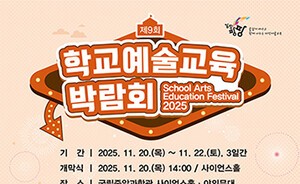 [대전=투데이충남] 정지욱 기자=대전시교육청이 오는 20일부터 22일까지 ‘2025 제9회 학교예술교육박람회’를 국립중앙과학관에서 개최한다.이번 박람회는 2017년 제1회를 출발로 해, 올해 9회째를 맞이한 대표적인 학교예술교육 축제로, ‘즐겁게 배우고 함께 나누는 감성팡팡 대전학교예술교육’을 주제로 해마다 학생·교사·지역사회가 함께 어우러지는 예술교육의 장으로 발전해왔다.행사는 학교예술교육의 성과를 공유하고 지역사회와 소통하는 기회로서, 학생들의 예술적 감수성을 높이고 체험과 실기 중심의 예술활동을 통해 창의적 표현력과 예술적 공
