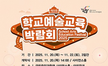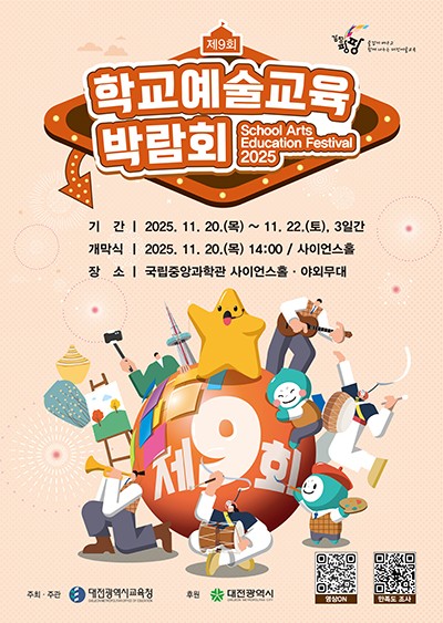 김희정 체육예술건강과장은“학교예술교육박람회는 학생들의 창의력과 감성을 조화롭게 성장시키는 교육의 장”이라며“예술이 학생의 삶과 배움 속에서 살아 숨 쉬는 힘이 되어, 대전교육의 중요한 축으로 자리매김할 수 있도록 체계적이고 지속적인 학교예술교육을 추진하겠다”고 말했다.